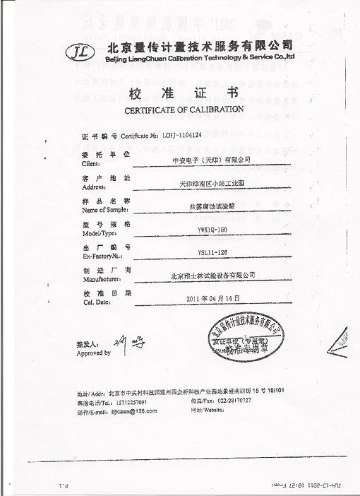 鹽霧腐蝕試驗箱校準證書-北京量傳計量-中安電子