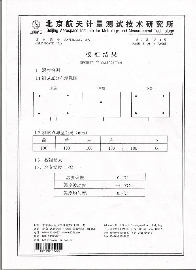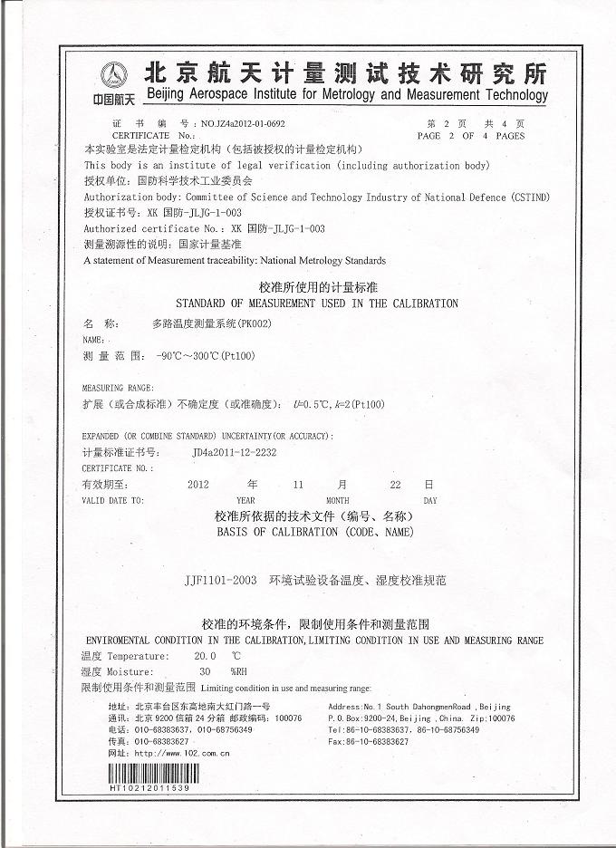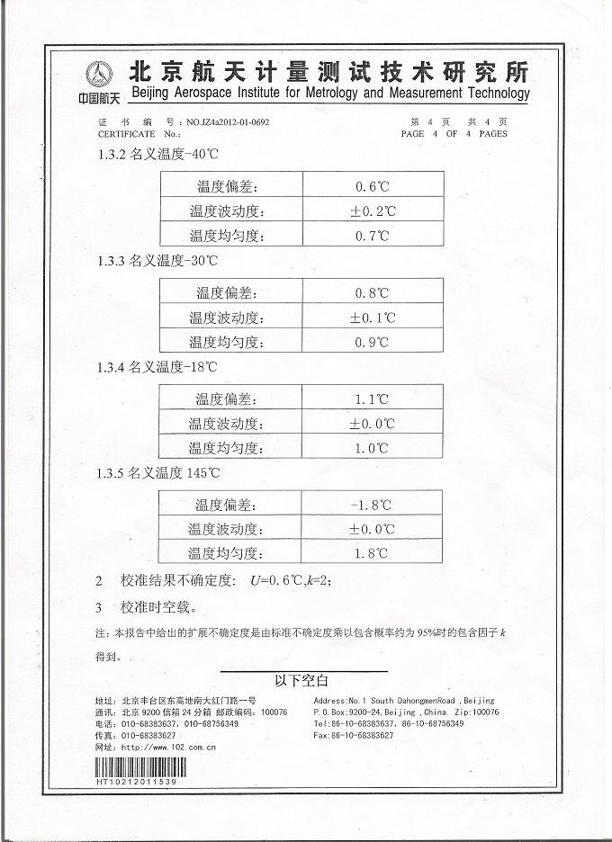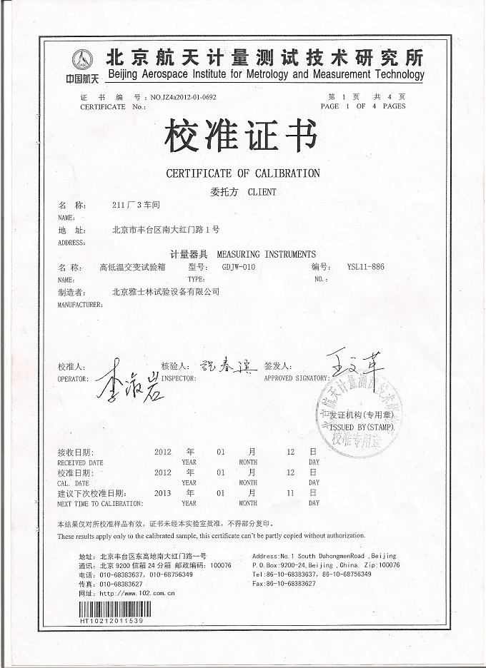 >>高低溫交變試驗箱校準(zhǔn)證書-航天計量-航天一院