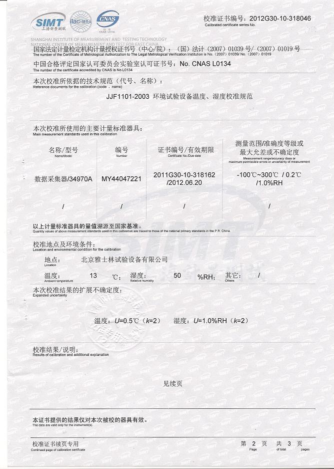 >>氣候試驗箱校準證書-上海計量院-中核控制2