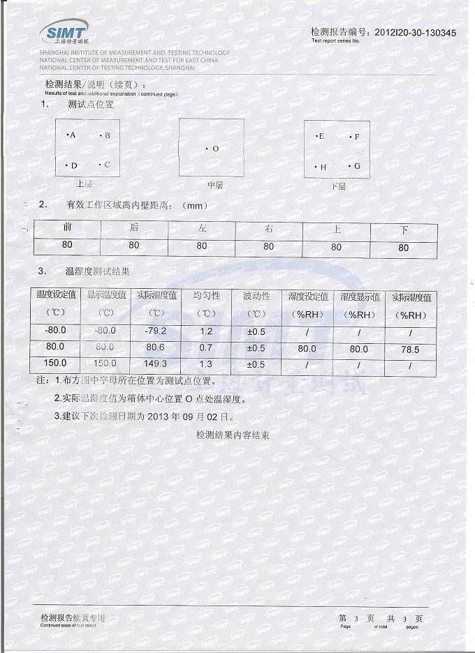 高低溫交變濕熱試驗箱檢測報告-上海計量院-國家光電檢測