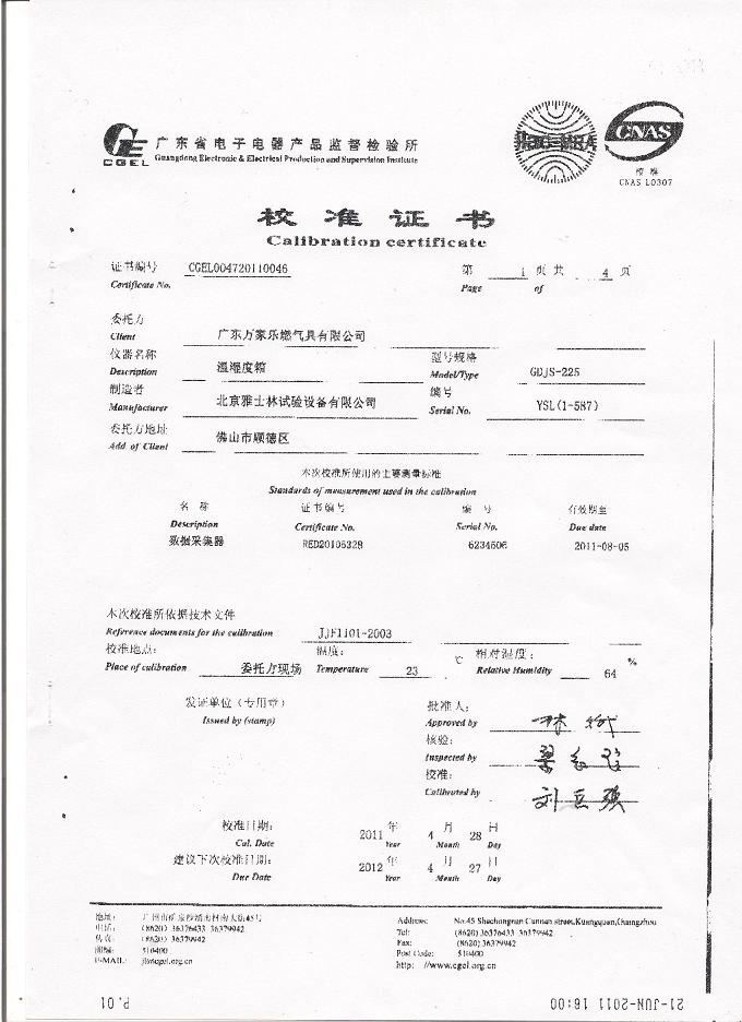 >>高低溫交變濕熱試驗(yàn)箱校準(zhǔn)證書-廣東檢驗(yàn)所-萬(wàn)家樂(lè)