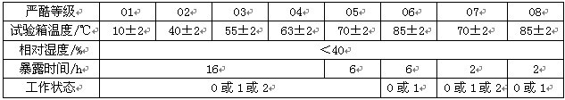 條件試驗13方法:凝露(下圖為條件試驗方法13凝露的嚴酷等級表)