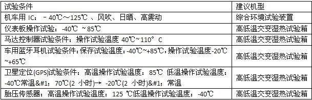 車用電子產品選購高低溫交變試驗箱時,應滿足如下試驗條件,并列出相關建議機型。